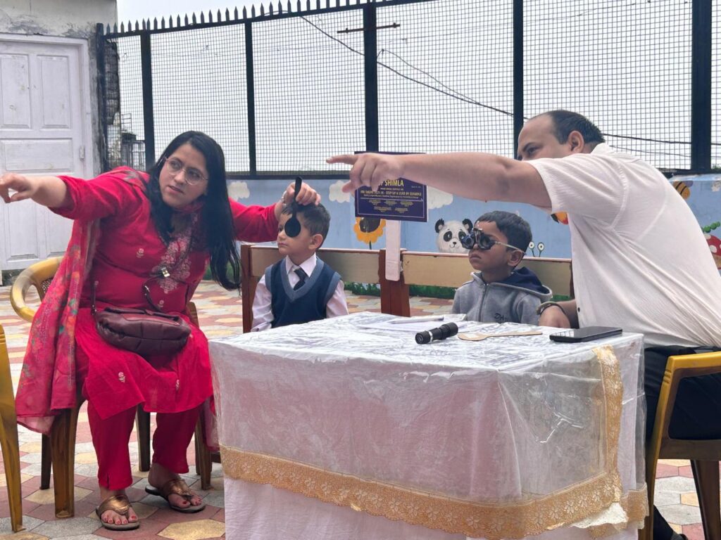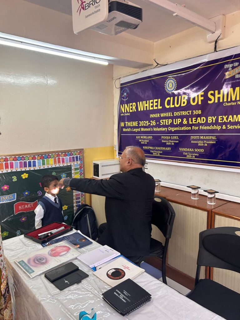 Free eye screening test for students of DAV Primary school, Middle Bazar, Shimla organized by Inner Wheel Club Shimla on Friday 4th July 2025 under the leadership of Mrs. Nirupma Chaudhary President Inner wheel Club Shimla. Inner wheel has collaborated with Former Principal IGMC Dr. Chaudhary and Assistant Eye Specialist from Grewal Eye Institute, who will provided the necessary equipment and personnel for conducting the eye check-ups. The screening was conducted during school hours as per principal permission.